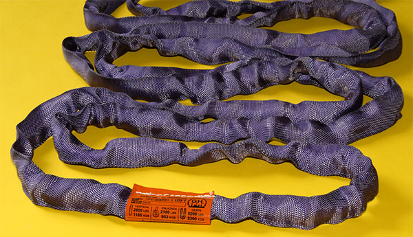 Las eslingas redondas son las más avanzadas para la carga, ya que se forman de filamentos especiales recubiertos por una tela protectora de gran resistencia. La capacidad de carga depende de la cantidad de fibras internas que contiene cada eslinga.